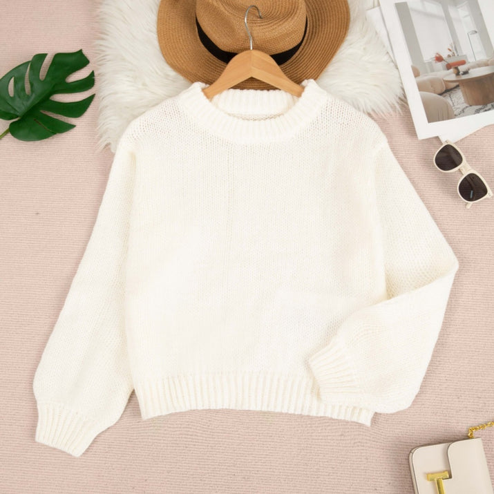 Women's Solid Color Round Neck Loose Casual Knitted Sweater
